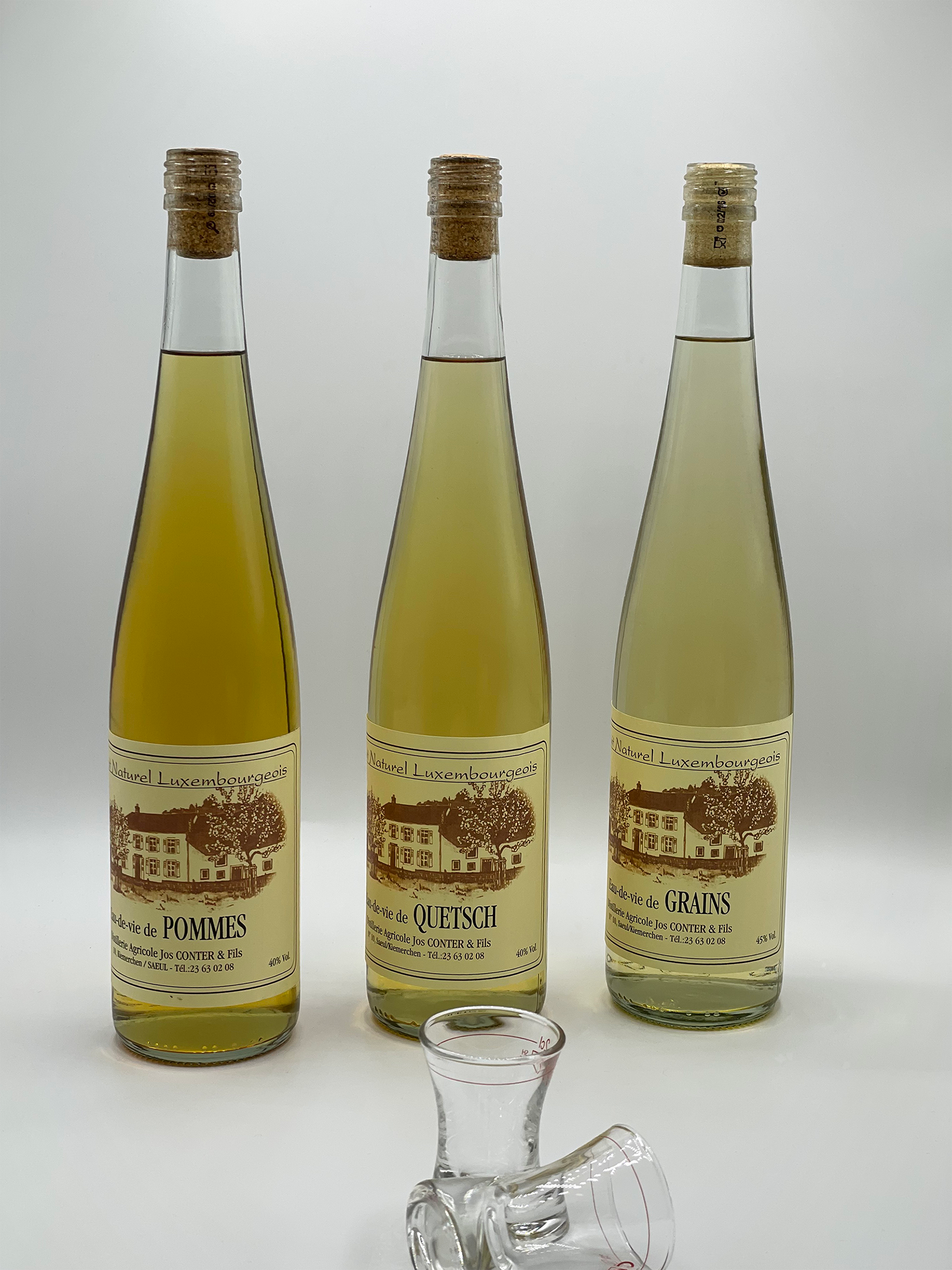 100% lëtzebuerger Traditioun an der Fläsch. Villsaitig ze gebrauchen (fir eng Ugemaachten, fir Likör oder fir an Gebees, oder...oder...oder...) Den Fruucht gëtt traditionnell och geholl fir d'Solperfleesch ze seenen, wann ët an der Bidden lait...Op dem l Bild sin d'Fläschen am 0.75 l Format ze gesin.